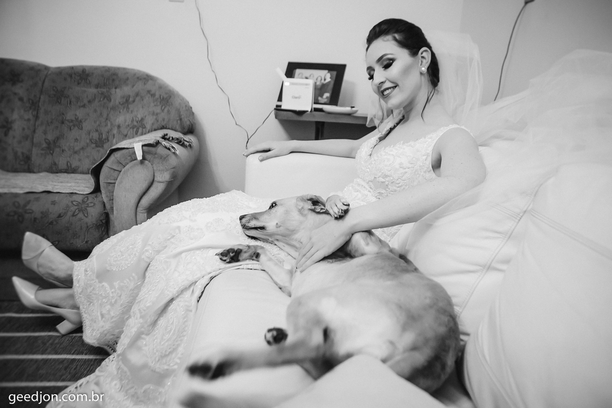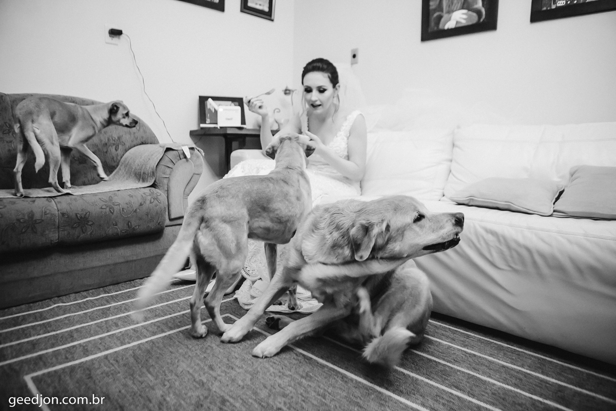 Pra começar amamos animais, de todas as espécies, e sim amamos cachorros, e o que não faltou nesse dia foi nossos amigos cães...rsrs, a fotógrafa aqui que trabalha de preto ficou cheia de pêlos ao visitar e fotografar a noiva na casa dos pais!