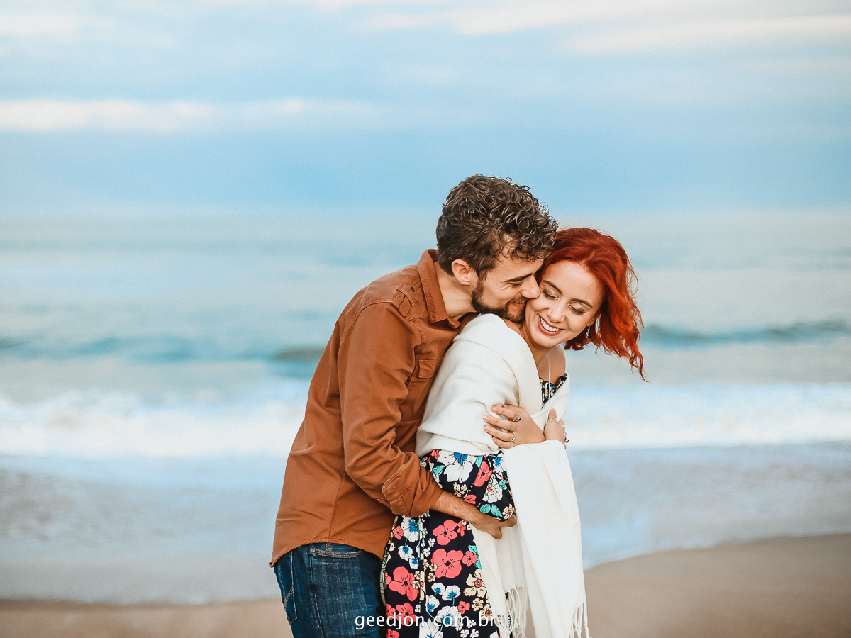 Para o nosso ensaio acontecer fugimos para uma praia deserta, onde não passava uma alma viva...hahah, estava frio pra caramba e ventava bastante, não tinha ninguém conosco, apenas nós dois e um tripé.